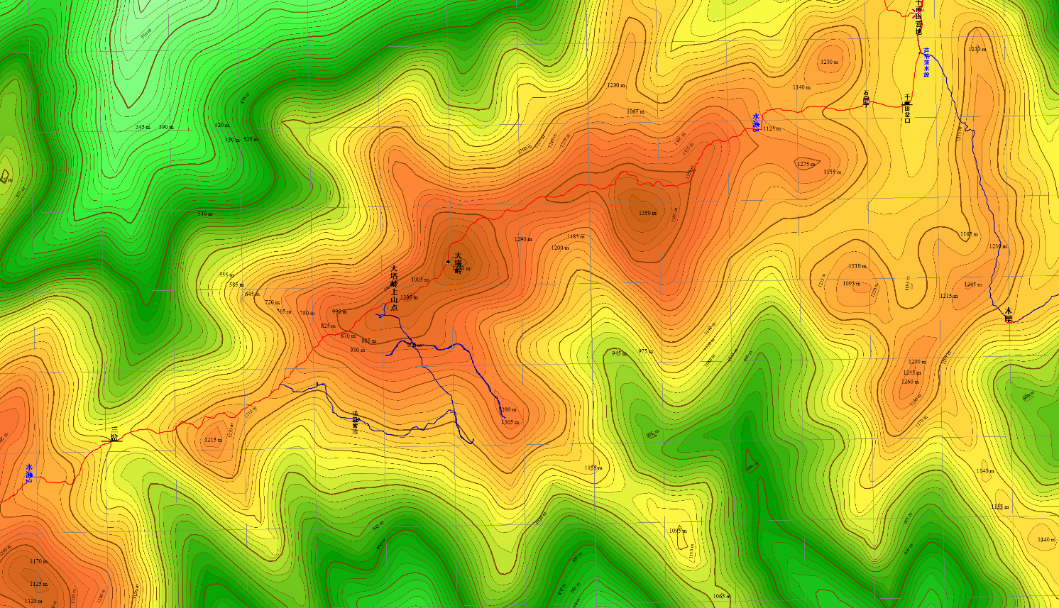 线路概况昱岭关穿越始自歙县浩川村,终点为千亩田。之后可以选择大明上山路线连穿或大明下山路线下山。线路较长,密林多,线路上有很多山峰可选登顶,对体能要求高。近期走 的人不多,路带少,适合领队培训。 探路人员领队:zx副领1、队记:hw 副领2:zyx 押队、队医:lbr 紧急情况联系人:jfy 任务分工训练计划:hw、zyx带训练:zx、lbr、zyx 线路制定:zx、hw、ldy(大明) 地图制作:zx 食品:zx、hw、zyx 装备:zyx 财务:hw 保险:ldy(大明)、zx 报备:ldy(大明)、sqc(大明)、zx 司机联系:ldy(大明)、zx 营地、腐败:ldy(大明) 训练计划![]() 训练情况除第九周周二训练因中途下雨取消、第十一周周二因协会缺人帮带协会训练外,训练遵循了计划。队员均有不同程度的缺训,部分进行了补训。 本人忘了一次爬楼,检讨。 探路过程中全队体能储备一般。D1下午,部分队员出现抽筋预兆。当然,线路较常规 昱岭——大明连穿短了不少,不能考验体能的极限。 附上我保存的两次详细的训练记录。 ![]() 公共装备高山帐*1锅*2 炉头*1 GPS*1 对讲机*1 对讲机充电器*1 对讲机防水袋*1 修补杆一套 气罐*2(合计约1.5个) 水袋*2 小会旗*1 食品D0晚:自备,服务区or大明农家接热水,水杯可放车上D1早:切片面包,车上解决 D1午:切片面包+火腿 D1晚:挂面+肉 D2早:麦片+卤蛋+沙琪玛 备用食品:压缩饼干每人1包 路餐:自备,禁止腐败 地图(15m等高距)![]() ![]() ![]() ![]() ![]() 图中红线为预定线路,蓝线为可选选路。丹阳岗四叉路口往北为水库下撤路线。 上传不了大文件,截图将就了。 预计线路(正常)D0 交大——大明农家——浩川村 D1 浩川村——福泉村——搁船尖山腰(不登顶)——板桥村——雨伞尖上山点(不登 顶)——大塔岭——千亩田 D2 (跟随大明队伍)千亩田——大明农家 (梯田扎营) D1 浩川村——福泉村——搁船尖山腰(不登顶)——板桥村——雨伞尖上山点(不登 顶)——梯田营地 D2 梯田营地——大塔岭——千亩田——第一个难点(与大明队伍会合)——大明农家 ![]() 实际线路D0 交大——大明农家——竹铺村G56桥下D1 竹铺村——浩川村——福泉村——搁船尖——板桥村——雨伞尖上山点(不登顶) ——大塔岭——千亩田 D2 (跟随大明队伍)千亩田——大明农家 航迹(by zyx)http://bbs.sjtu.edu.cn/file/outdoor/154390797180631.kml预计时间节点(正常)D1 04:15 起床 04:30 浩川村大巴出发 +02:15 里程5.5km爬升600m(360-960) 06:45 到达福泉村 06:50 福泉村出发 +01:40 里程1.5km爬升500m(960-1460) 08:30 登顶搁船尖 08:40 搁船尖出发 +01:30 里程2.4km 下降400m(1460-1060) 10:10 到达水库下撤点 10:15 水库下撤点出发 +01:00 里程3.1km 下降50m(1060-1010) 11:15 到达板桥村 12:00 板桥村出发(13:00关门时间) +01:30 里程1.4km上升300m(1010-1310) 13:30 到达雨伞尖上山点 13:35 雨伞尖上山点出发 +01:10 里程2.2km爬升100m下降170m(1310-1240) 14:45 到达梯田营地岔路口 14:50 岔路口出发 +01:40里程2.6km 爬升210m下降80m(1240-1370) 16:30 到达最后一个山头(大塔岭后一个山头) 16:35 山头出发 +01:15里程2.2km下降240m(1370-1130) 17:50 到达千亩田营地 (17:30天黑,可从午饭点挤时间) 08:30 熄灯睡觉 (D1正常会合) D2 06:00 起床 08:00 出发 08:30 到达悬崖难点 10:30 到达难点2 12:30 到达向导家、腐败 14:00 出发回上海 20:00 到达庙门,解散 (D1来不及到千亩田) D2 尽早出发在梯田营地扎营,大明D2 08:00出发 04:30 起床 05:30 梯田营地出发关门时间(天亮06:11) +00:50 里程1.5km 爬升170m(中间一段里程300m 爬升近100m)(1190-1360) 06:20 返回大路 06:25 继续赶路 +01:00 里程2km 爬升90m下降60m(1360-1390) 07:25 到达最后一个山头(大塔岭后一个山头) 07:30 山头出发 +01:15里程2.2km下降240m(1390-1150) 08:45 到达千亩田营地 09:15 到悬崖难点,可赶上(大队伍8:30—10:30过悬崖难点) 或梯田营地再往前找营地,D2可少赶路 实际时间节点D1 04:31出发 04:56进山口 05:12休息脱衣服 05:37过溪 06:10出密林 06:58福泉 08:20领队摔了 08:56 zyx摔了 09:58水库下撤口(休息) 10:10出发 10:20雨伞尖分叉口(横切) 11:00板桥村午饭点 11:40出发 12:54清凉峰界碑(煮盐散) 15:20大塔岭最后一尖 16:13和大队伍会和 16:20到达千亩田营地 D2 可参考大明队伍 天气情况![]() 出线前有连续降雨。浩川至搁船尖段河流较急,但水位不高;树丛水汽充沛,很潮湿 ,没有穿着防水层基本湿透。山上山阴面,较为湿滑。 出线前一天开始天气转好,凉爽宜人,山顶(搁船尖)较冷。 千亩天宿营,晚上4人高山帐+G400,个人体验舒适。 线路过程D0计师傅到得很准时,高速通畅。约22:30放下大明队伍。走小路不便,再上G56杭瑞高 速,23:01下高速,前往浩川村。过浙皖边界,高速收费增加。 计师傅大车过竹铺乡后,道路狭窄且有建材堆积,经过杭瑞高速桥底即不便继续向前 开了,遂停高速桥底。宿车上。 忘报平安,检讨。 D1 04:05 闹钟,四人皆醒。04:31出发。距离预计出发点1.7km,导致时间节点落后20 min。 至浩川村好走,浩川村内小路很多,走岔两次,饶了点路。 出浩川,上山路径明显。5.2km处走错路,左拐岔路不很明显,虽有蓝色路带,但密林 有所遮挡。5.7km岔路处探了一小段密林,密林有开路痕迹,难走,实则另一条为明显路径 。此处浪费约10min。 两次走错路,押变领。 至福泉,仍与时间节点保持20min落后。 至搁船尖山腰岔路口,考虑天气情况好,时间节点基本追回,队员情况良好且有登顶 意愿,决定登顶。下山时出发时间节点已完全追回。 下山路线前一半较为明显,后一半基本没